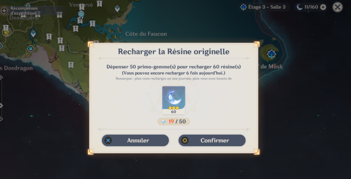 - Contre des Primo-Gemmes : Vous pourrez restaurer votre Résine contre des Primo-Gemmes.