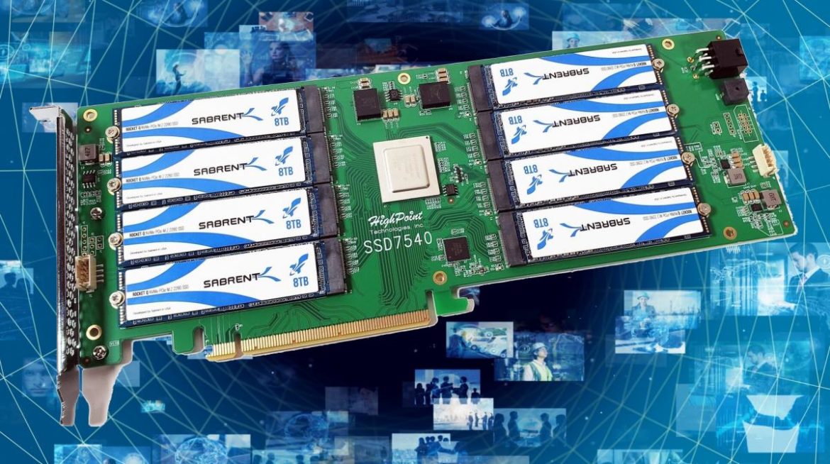 En apparence, cela ressemble à une carte graphique, mais en réalité, c’est 8 SSD avec facteur de forme M.2, chacun d’eux avec Capacité de 8 To, connecté via 8 ports NVMe.